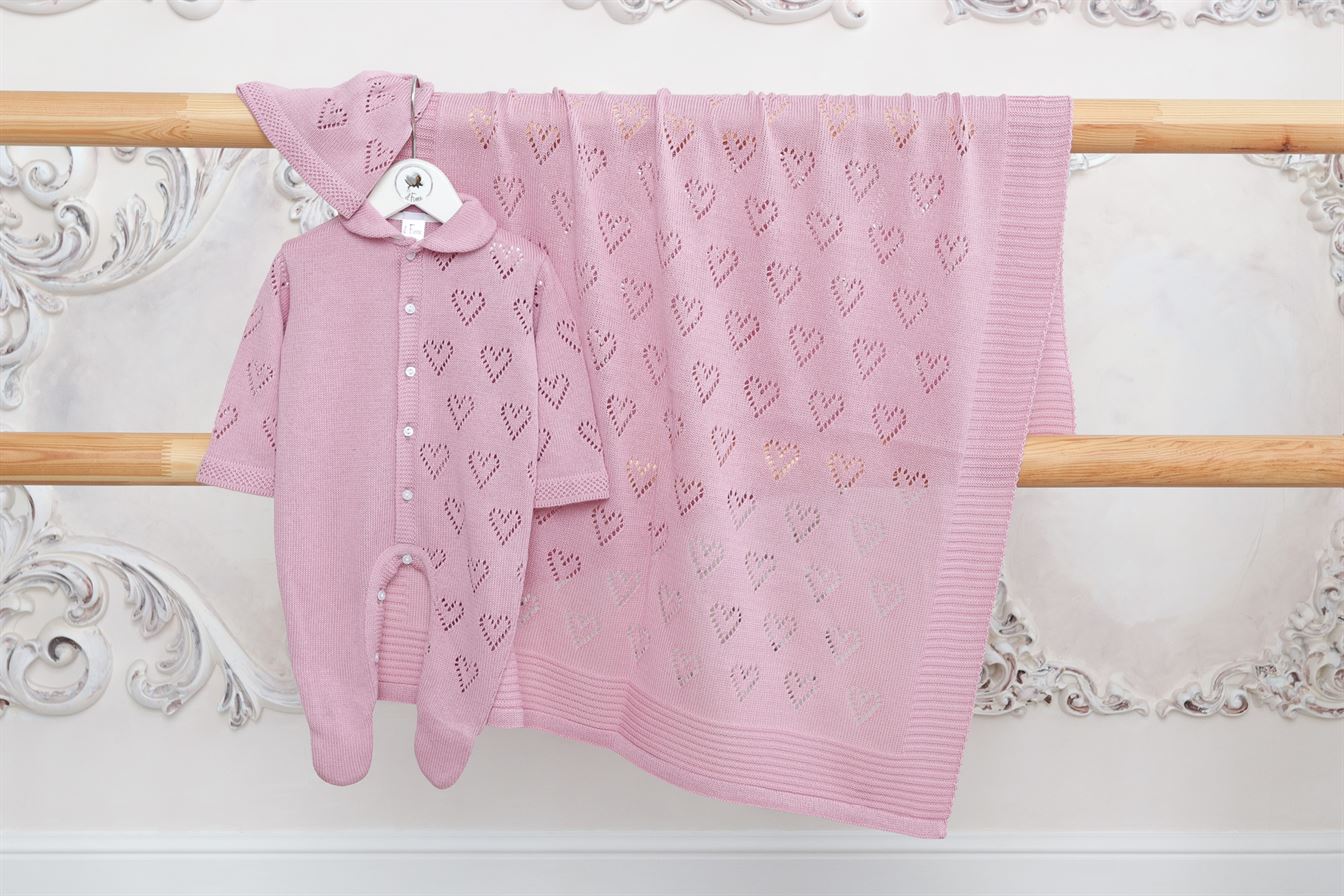 Состоит из трех предметов: плед, комбинезон и шапочка.