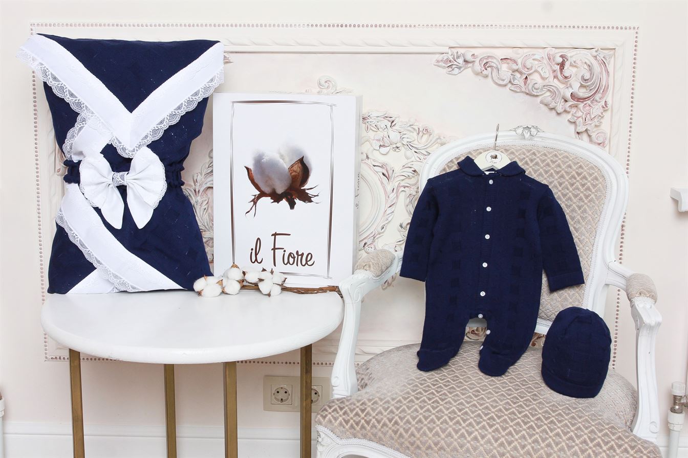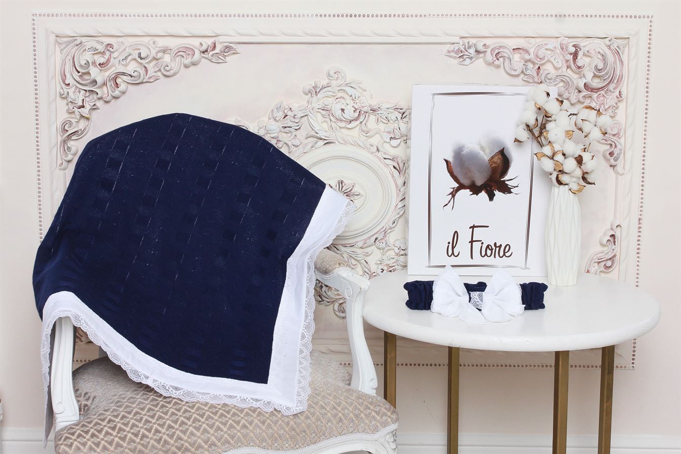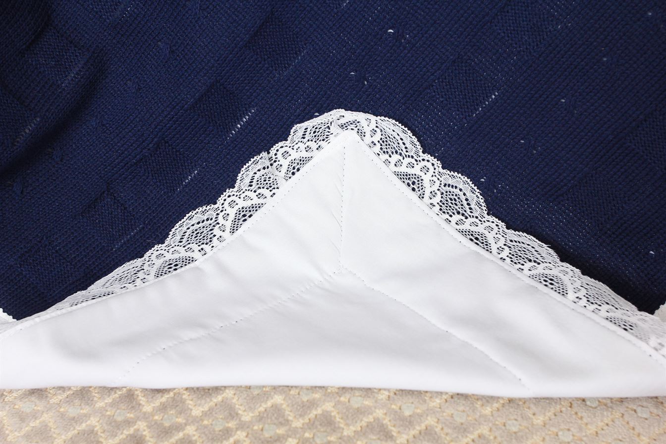 Комплект "Марсель" с фактурным плетением, с отделкой из кружева и сатина, которым полностью отделан конверт с внутренней стороны, что позволяет обойтись без уголка при выписки.