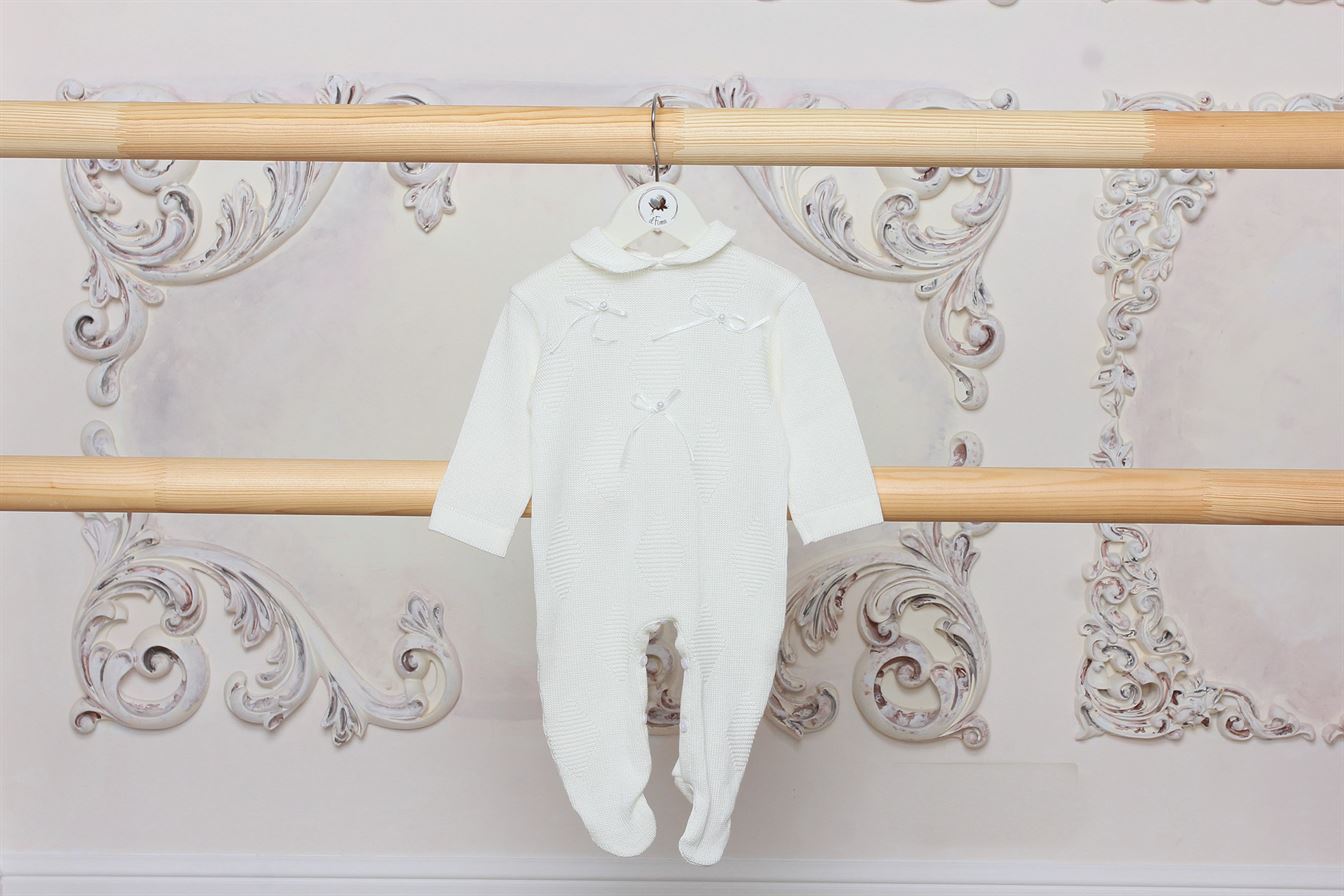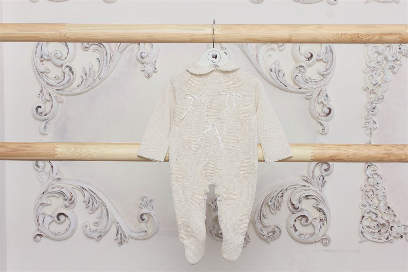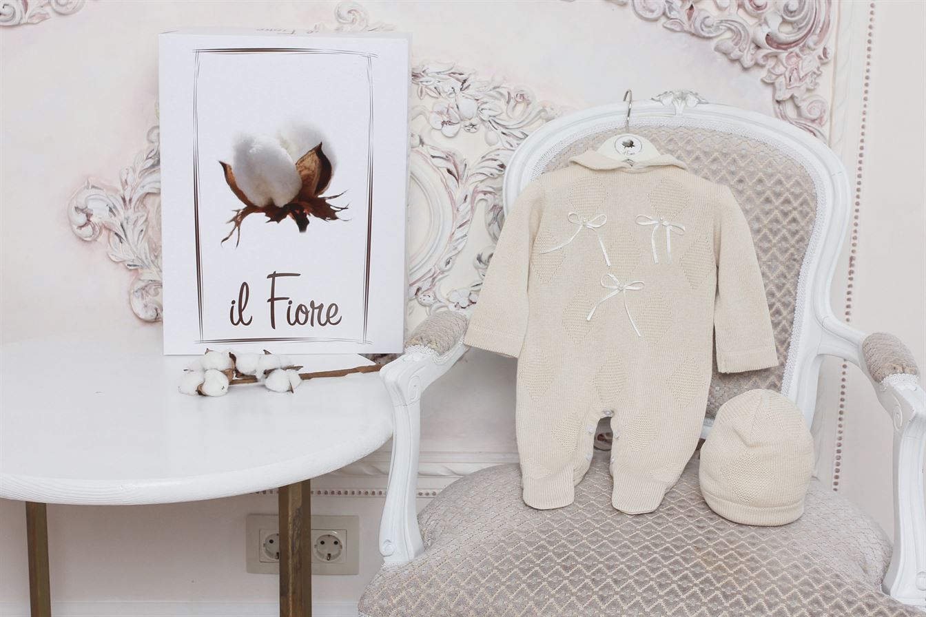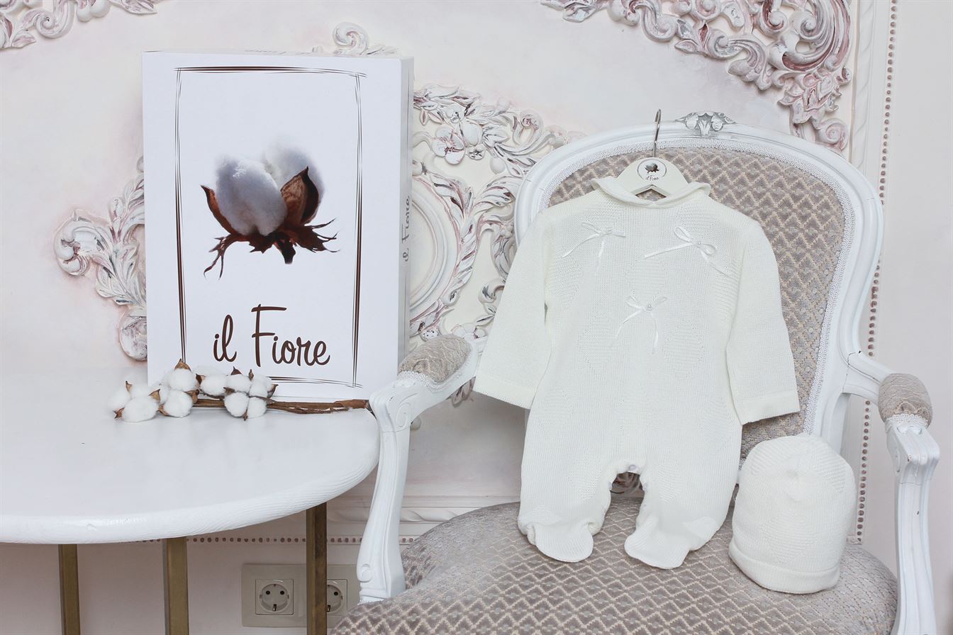 Комбинезон с шапочкой из коллекции "Ариэль" с отделкой из нежных бантиков с бусинами.