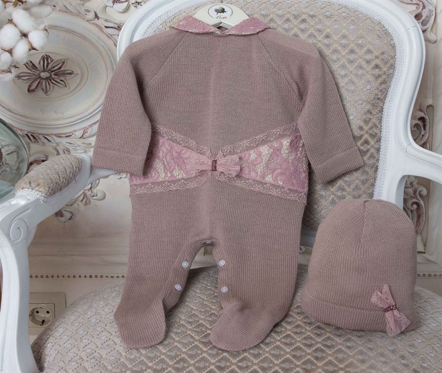 Комбинезон с шапочкой аппликацией из ажурного кружева. Комбинезон можно дополнить пледом с бантом-резиночкой и утепленной шапочкой с помпоном или сразу выбрать комплект в соответствующих разделах.