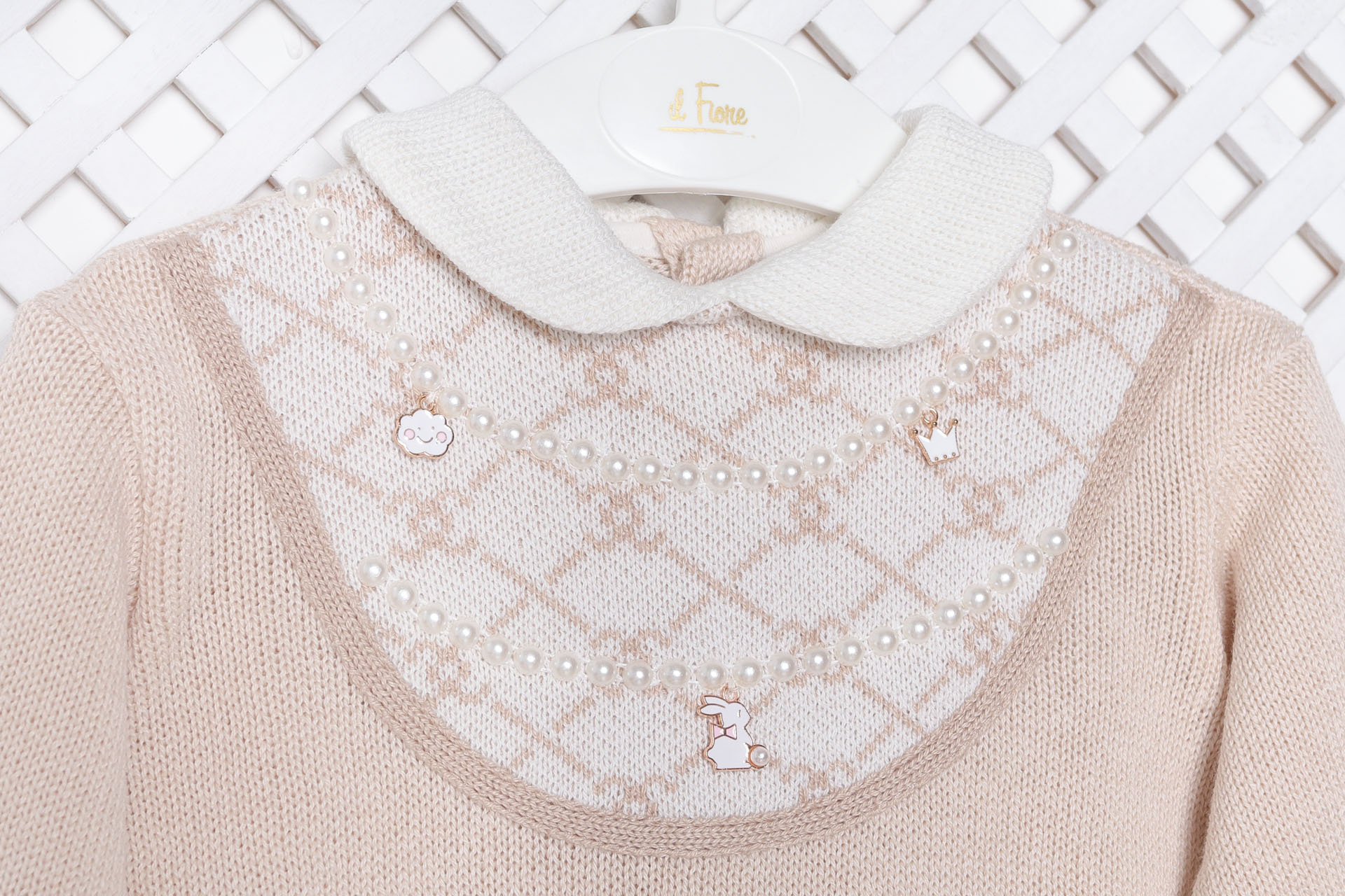 Комбинезон с шапочкой принтованной аплликацией из коллекции "Bonita", украшенный бусами и подвеской.
