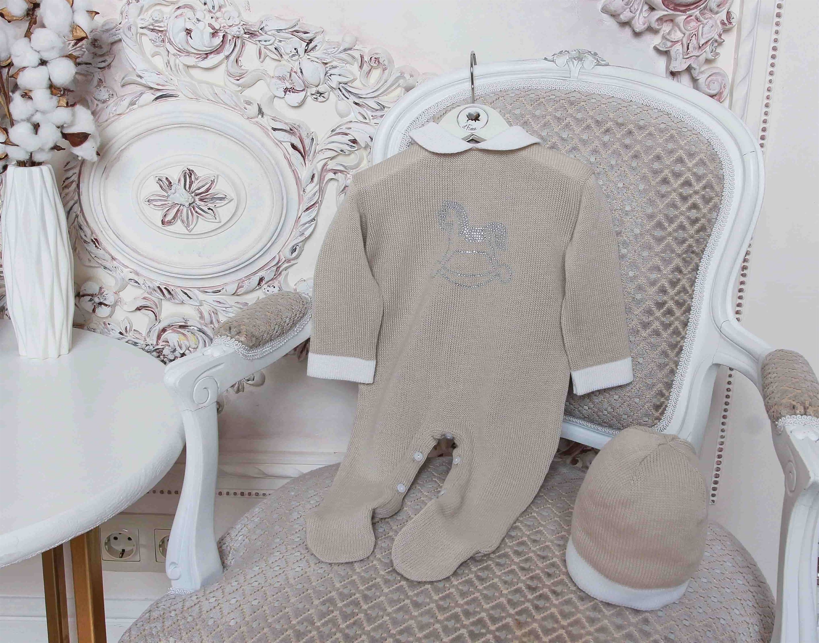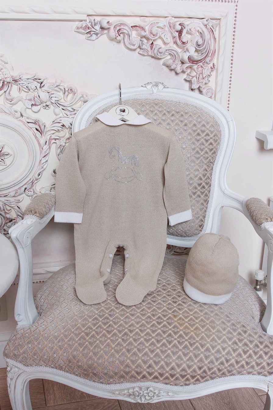 Комбинезон с шапочкой из коллекции "Лошадка/горошек", декорированный аппликацией из страз.
