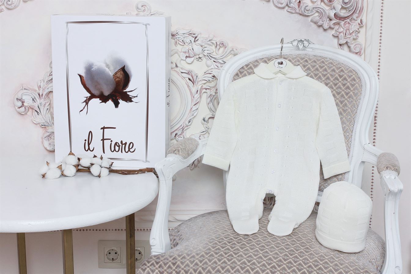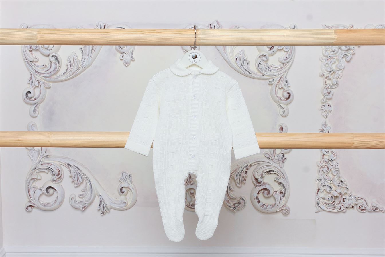Комбинезон с шапочкой из коллекции "Марсель" с фактурным плетением, удобно застегивается впереди на пуговички.