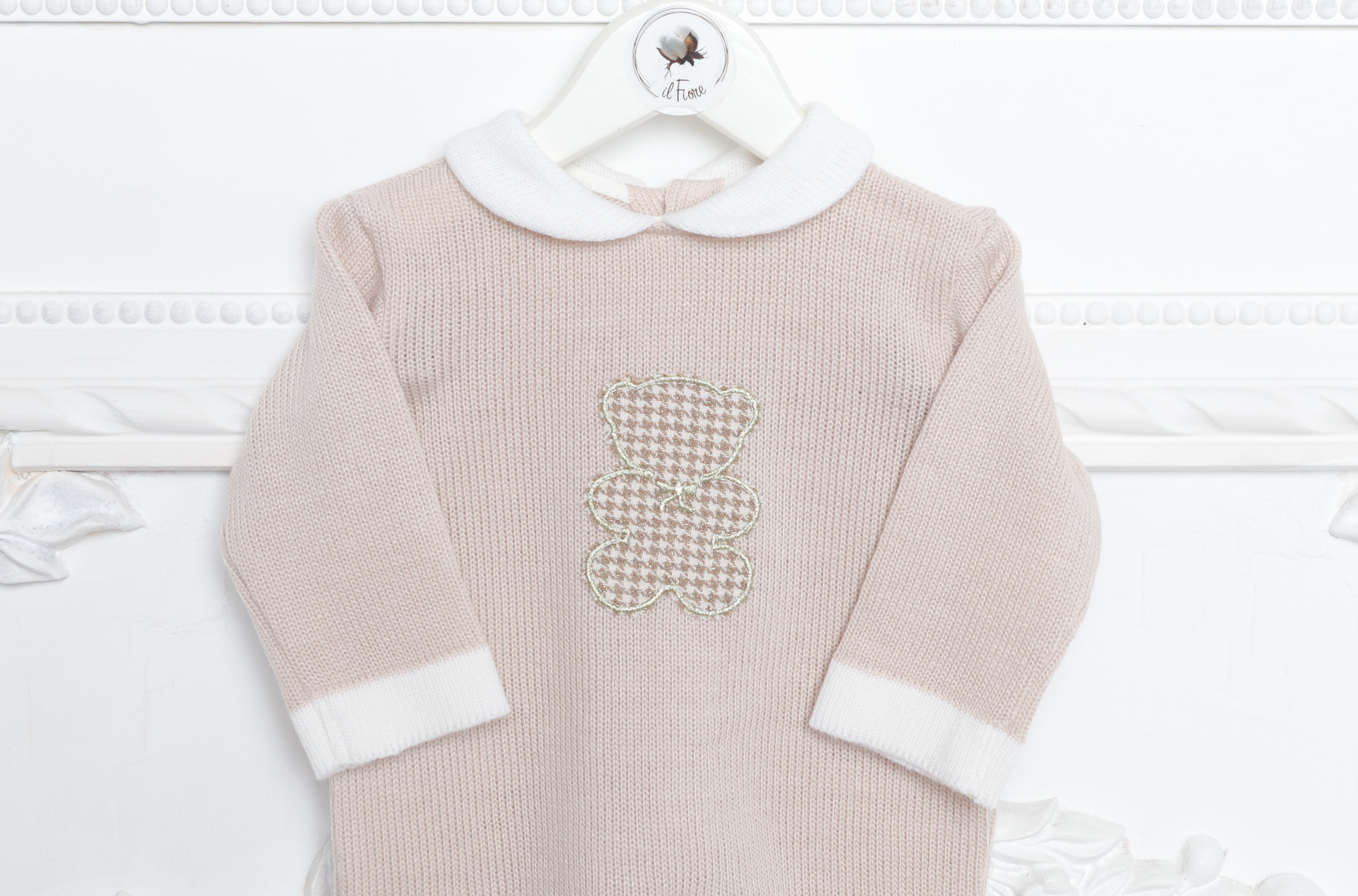 Комплект с оригинальной аппликацией в виде медвежонка прекрасно подойдет, как для выписки малыша, так и для повседневного использования