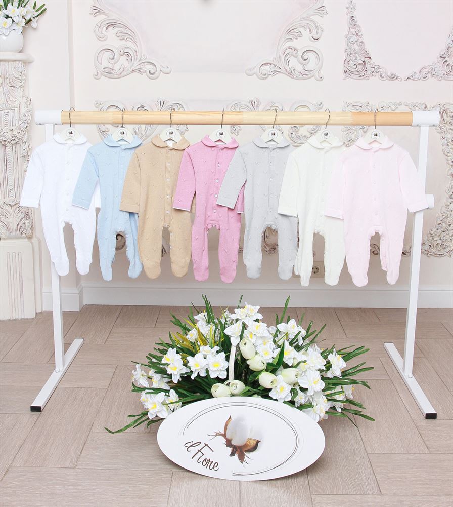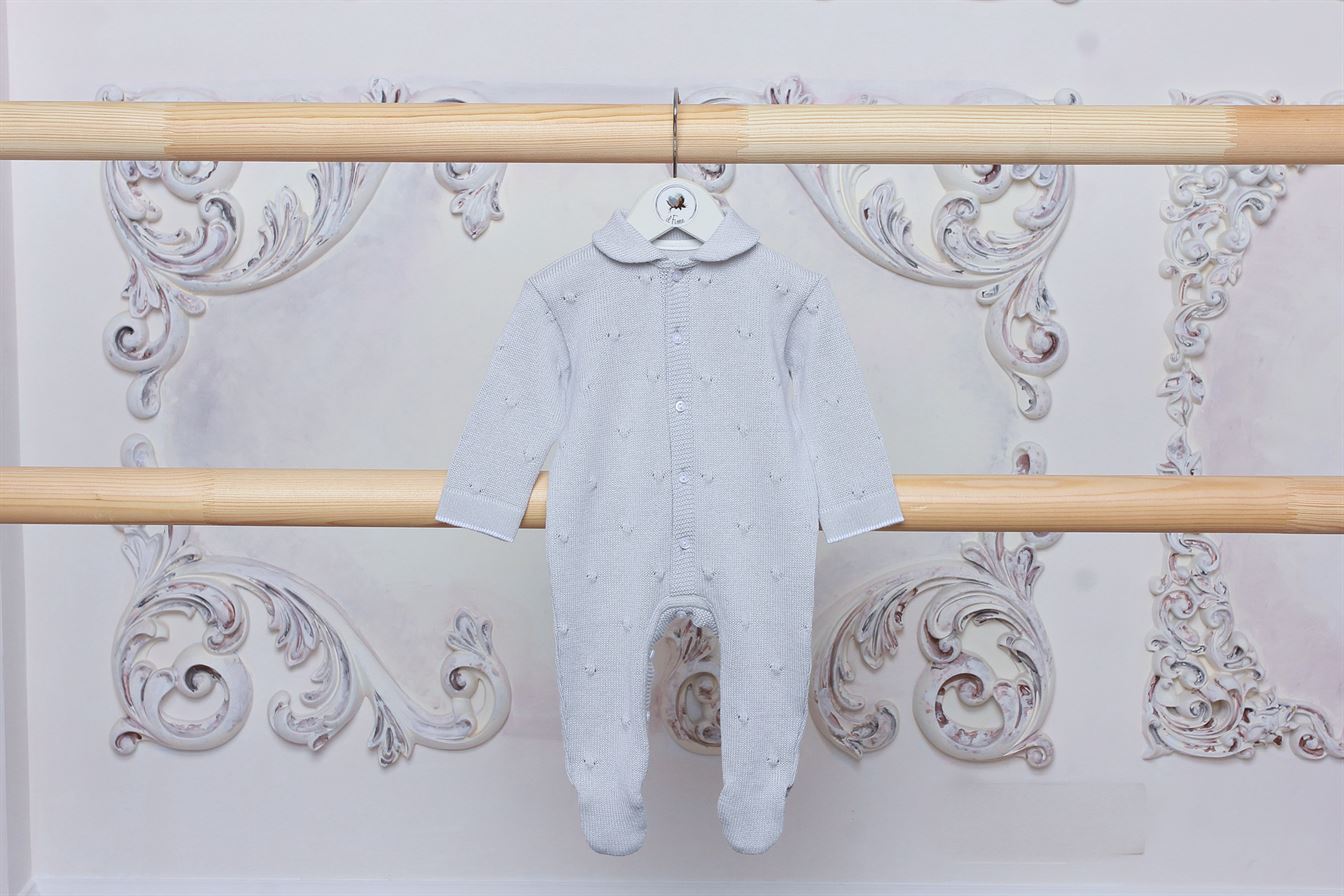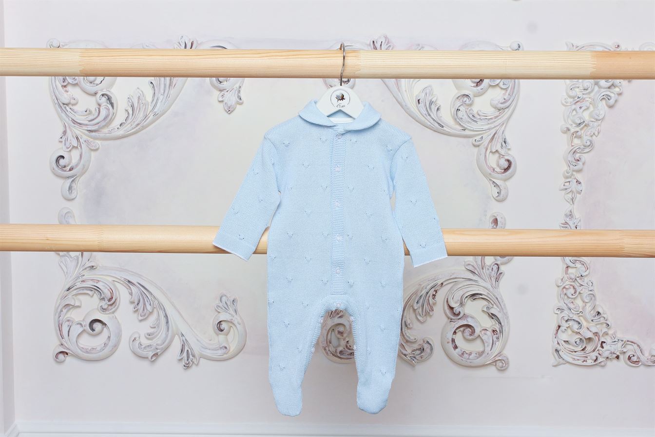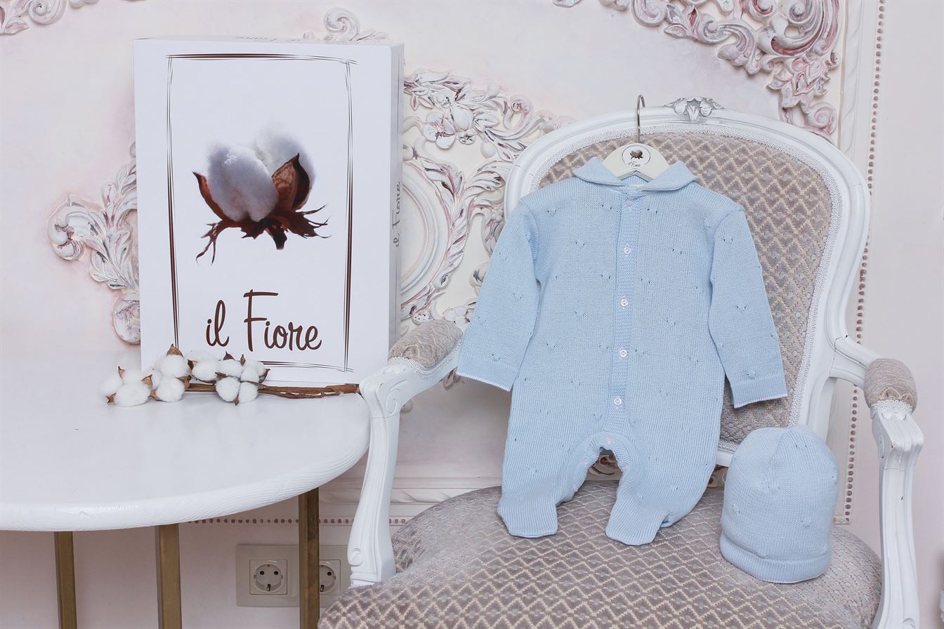 Комбинезон с шапочкой из коллекции "Рошель" с объемным рисунком вязки, удобно застегивается впереди на пуговички.