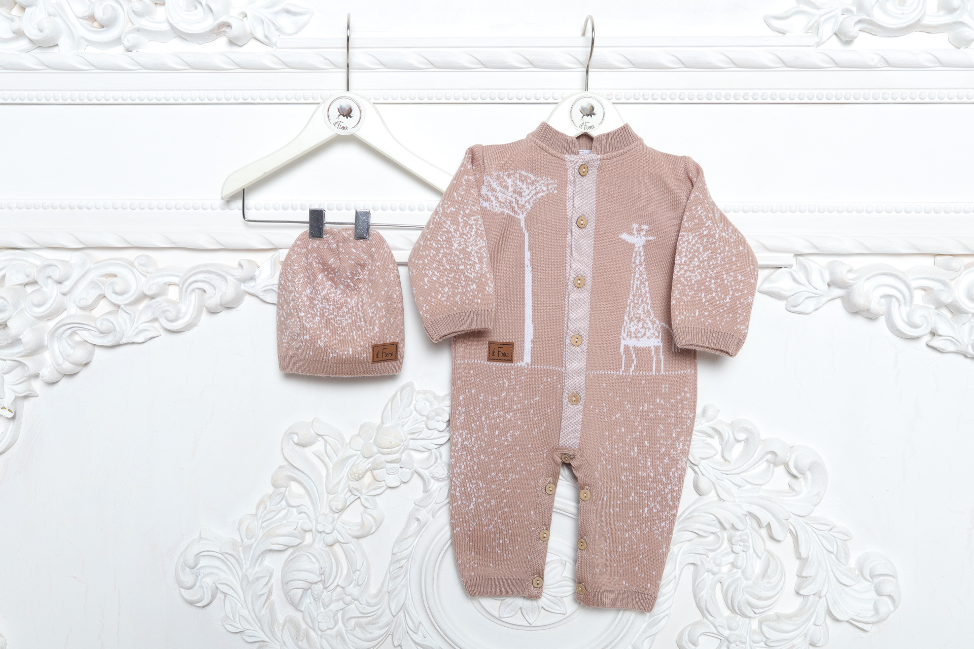 В комплекте: удобный комбинезон с практичной застежкой по всей длине и комфортная шапочка с аппликацией.