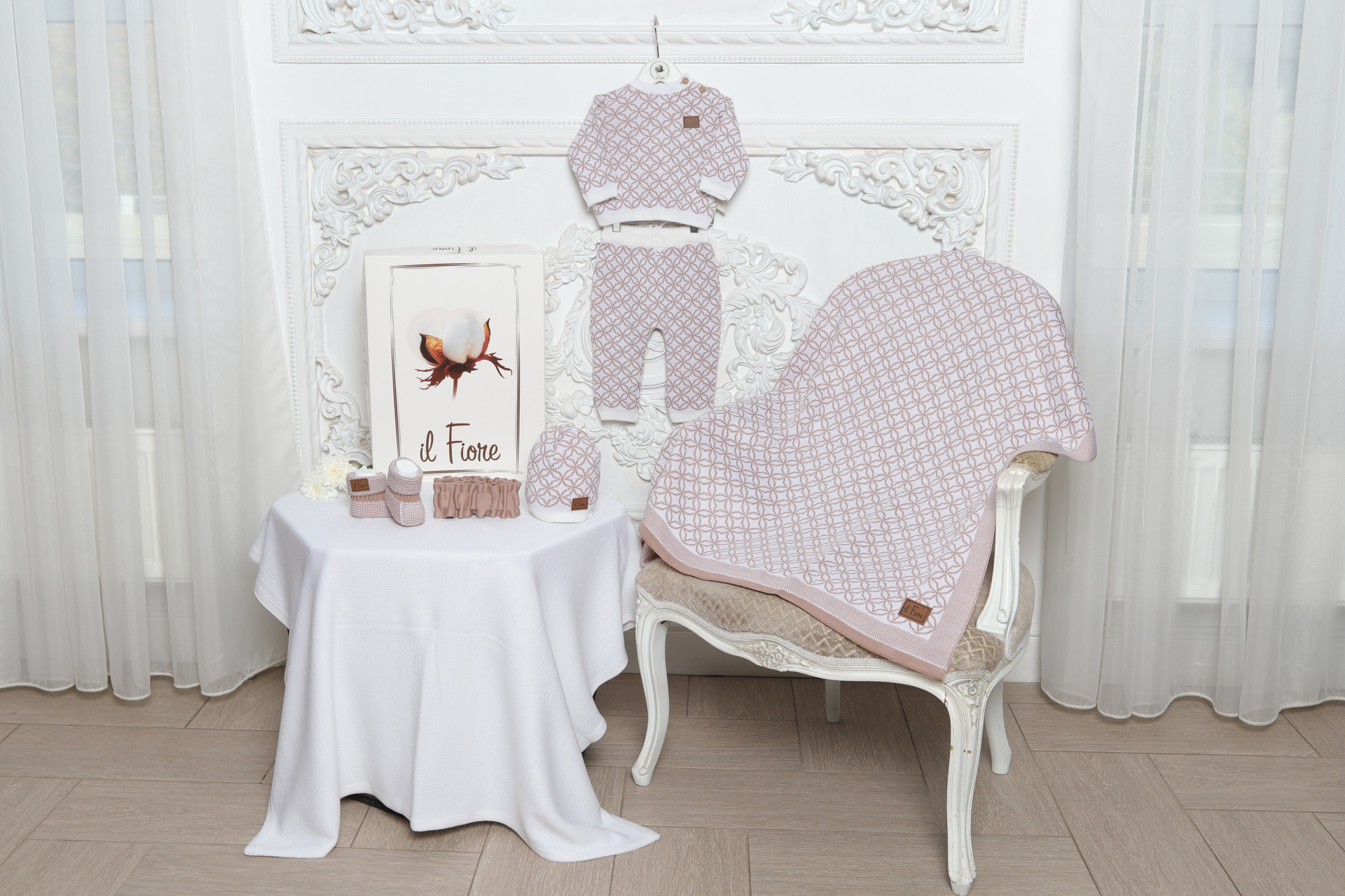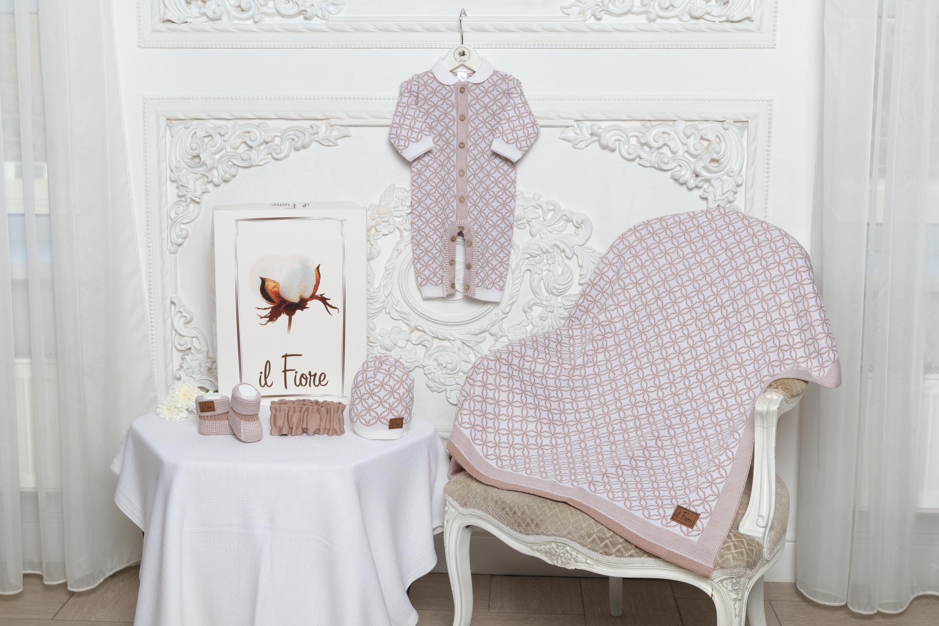 Утончённый узор придаёт каждому элементу неповторимую изысканность, делая образ малыша по-настоящему особенным. Благородные линии и изящные переплетения создают впечатление ручной работы, превращая обычный комплект в произведение искусства.
