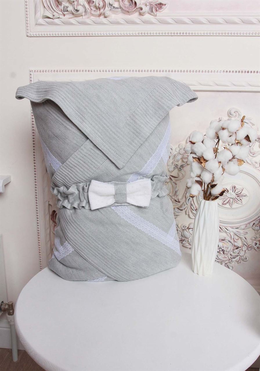 Конверт, декорированный кружевом и аппликациями из страз, включает в себя плед и бант-резиночку.