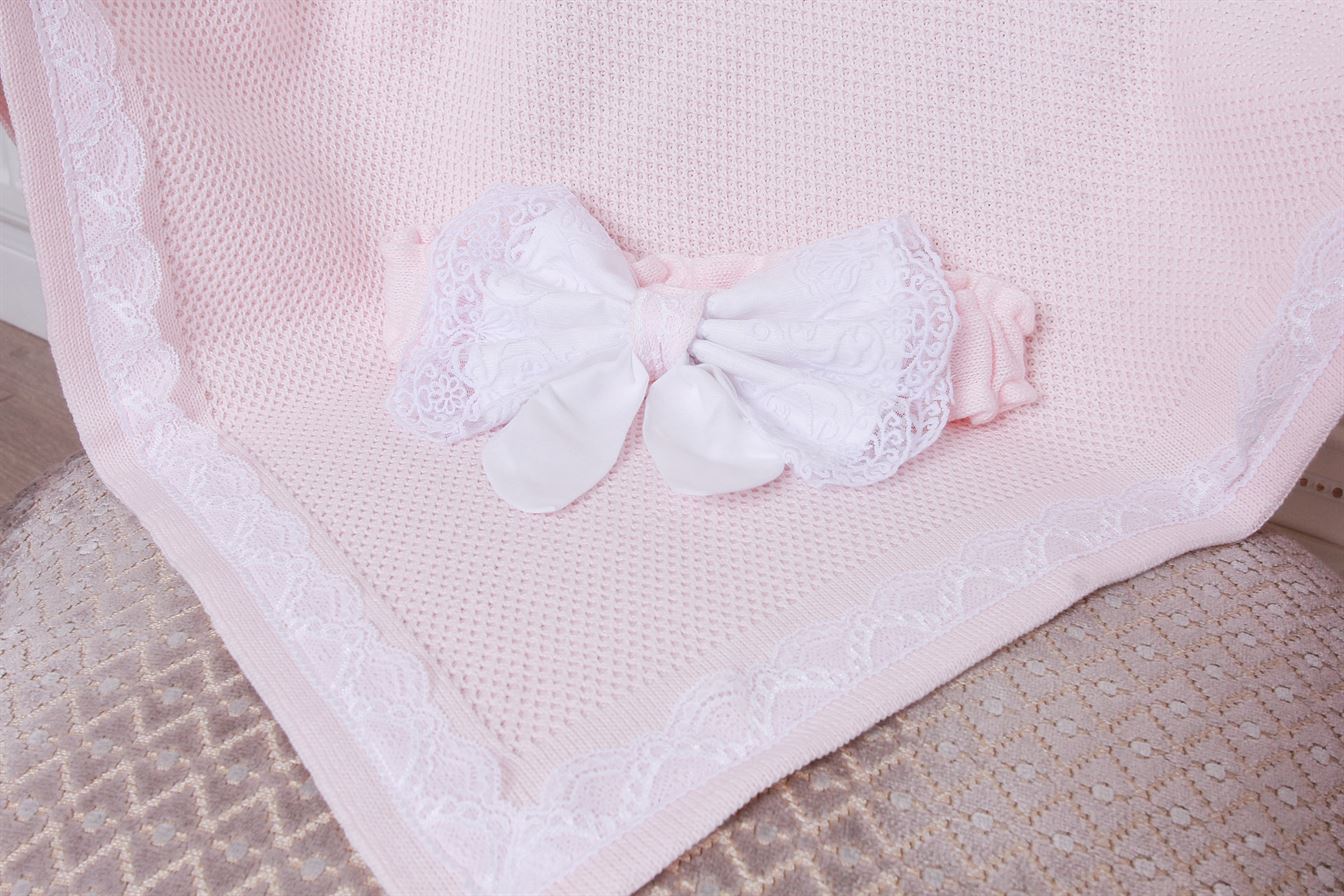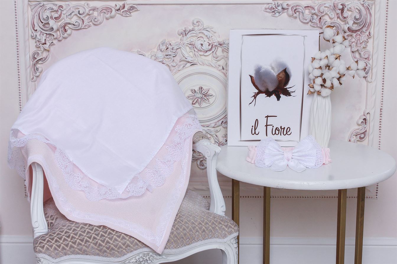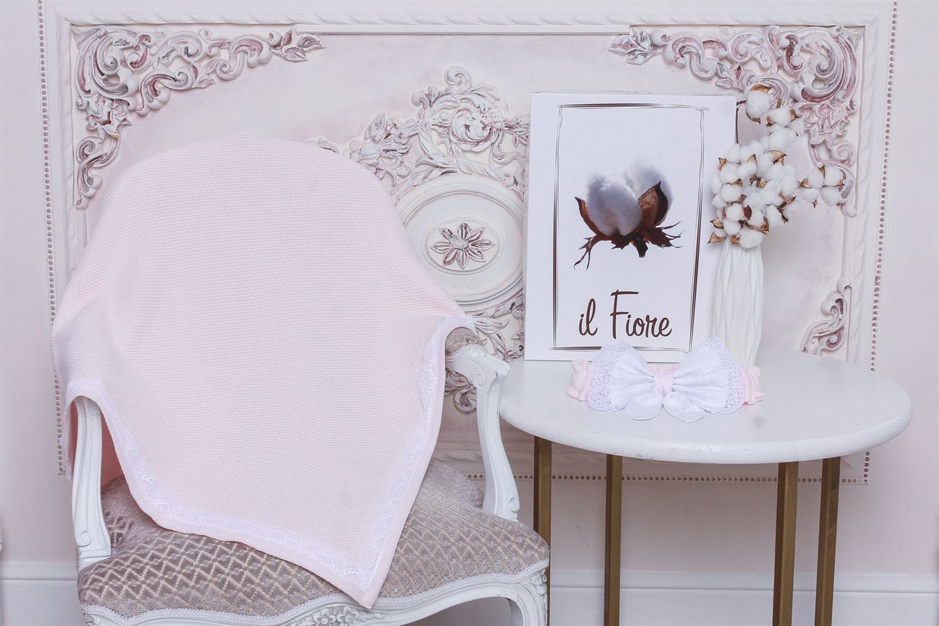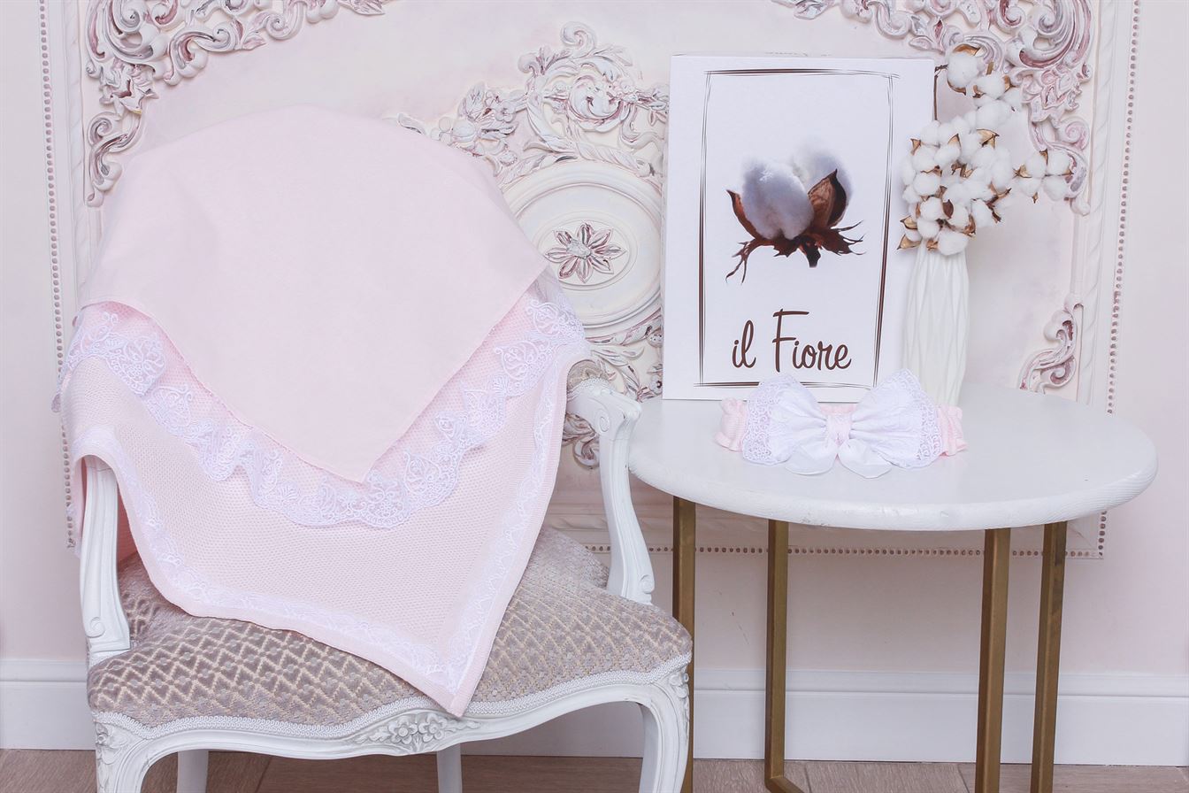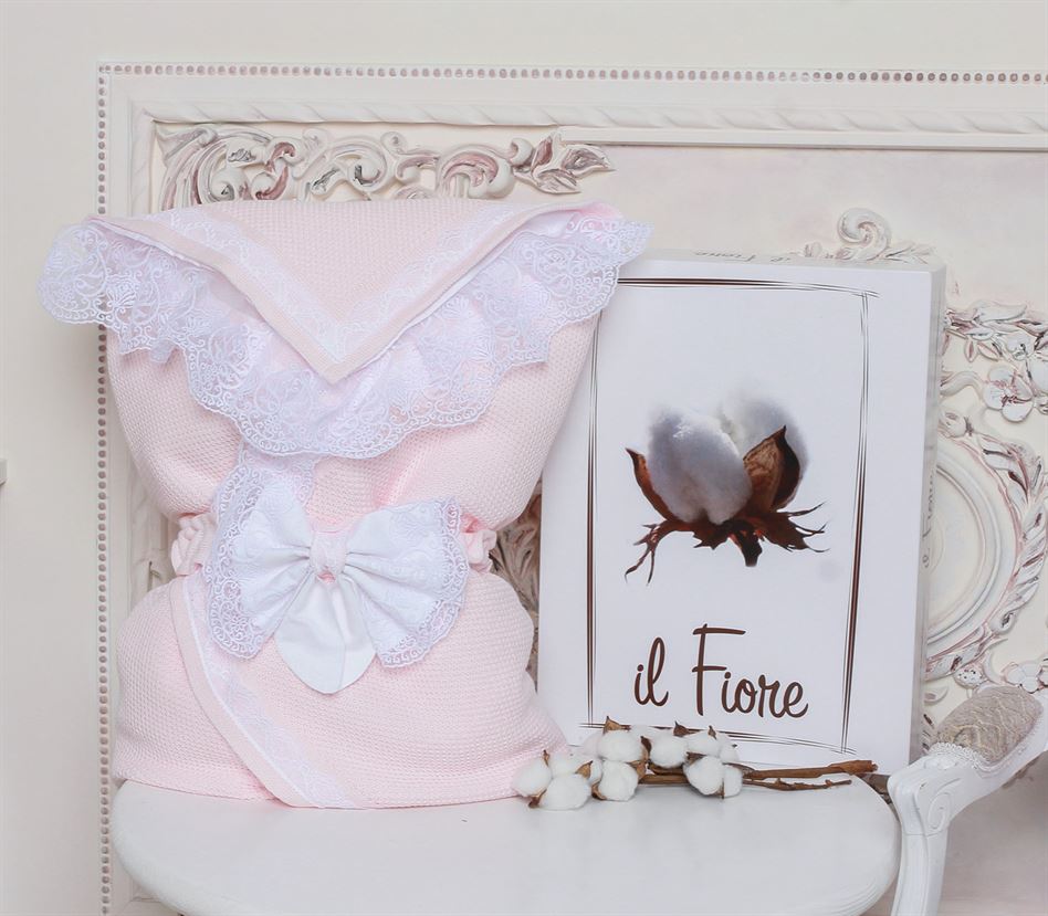 Плед-конверт "Прованс" с фактурным узором вязки и отделкой из кружева.