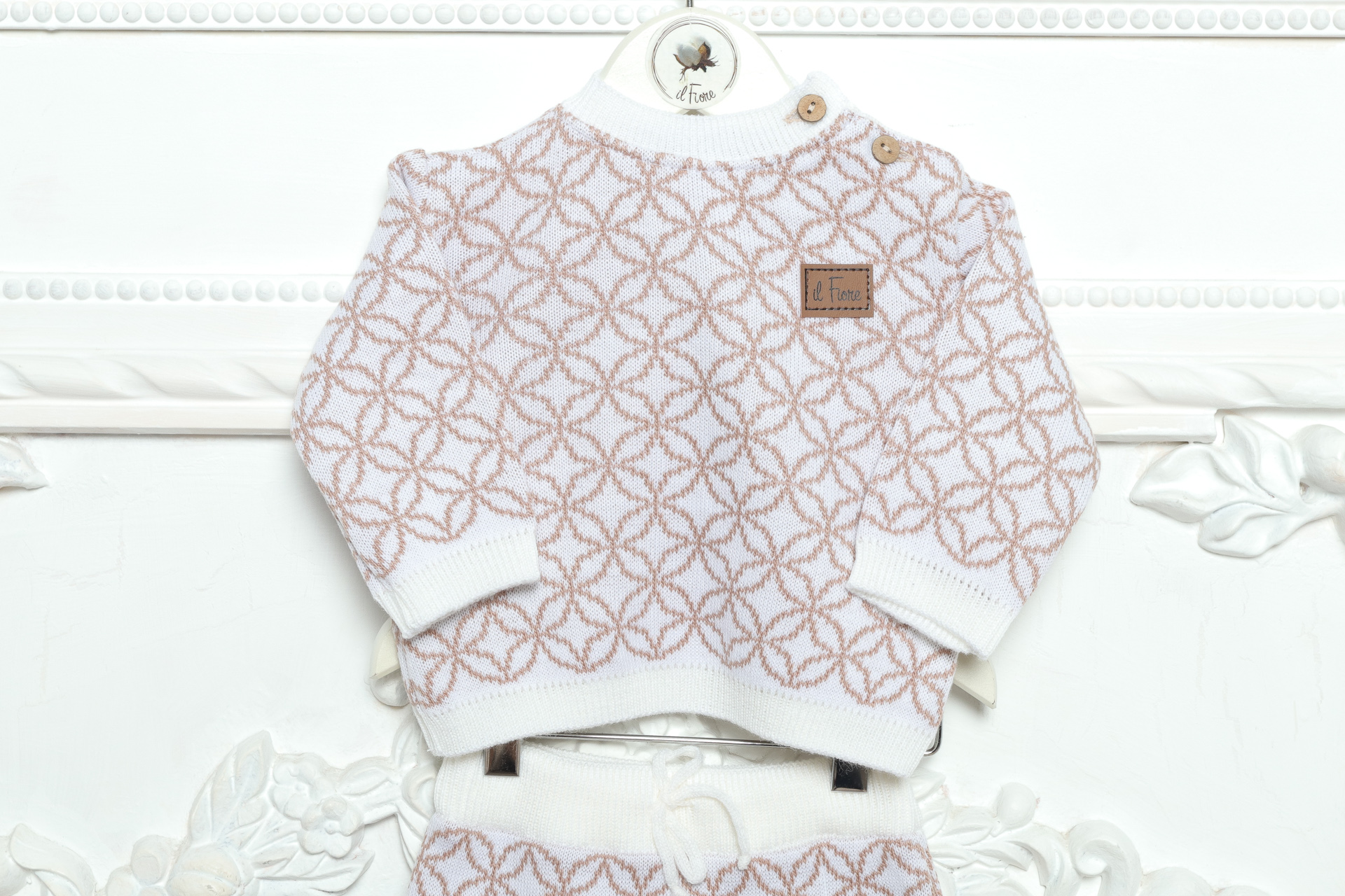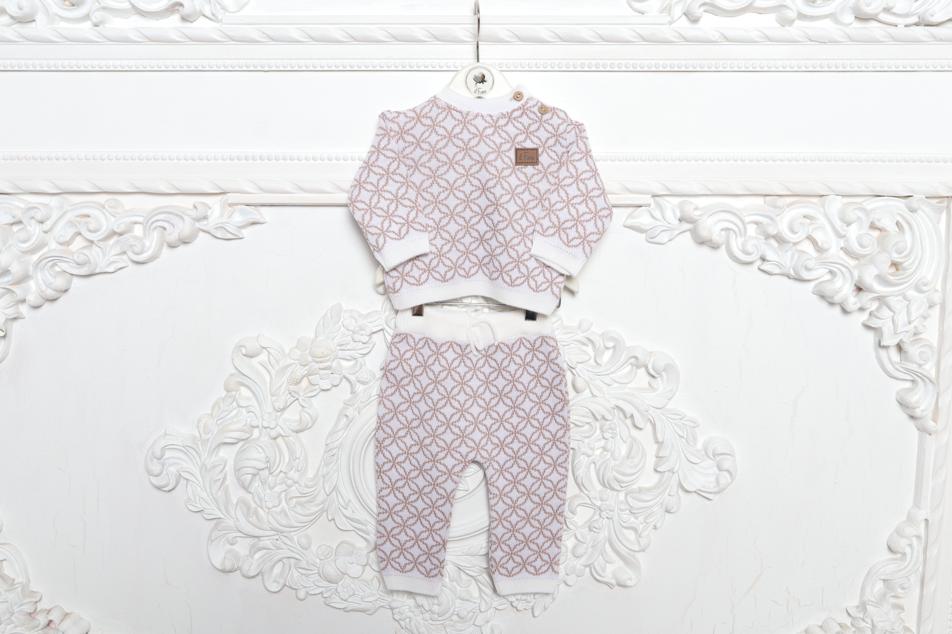 Свитер и штанишки со стильным узором - отличный вариант одежды для малышей. Комплект нежный и приятный к телу ребенка, аккуратные, мягкие швы не раздражают нежную кожу.