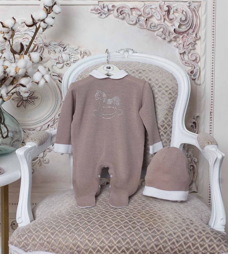 Комплект "Лошадка/горошек" декорированный кружевом и аппликациями из страз.