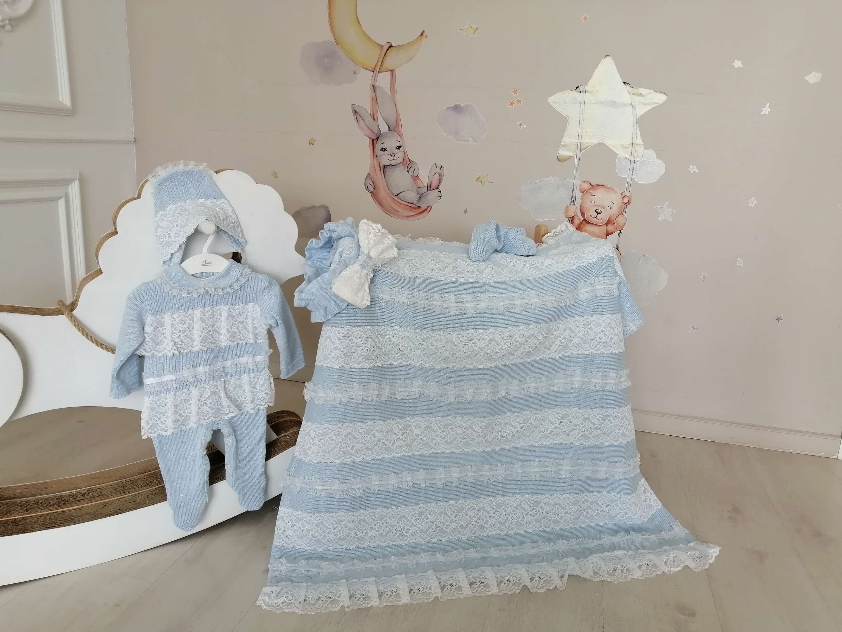 Комплект "Мечта" - воздушное кружево, нежные тона и невесомая легкость. Такой комплект чудесно подходит и для выписки малыша, и для повседневного использования и прогулок.