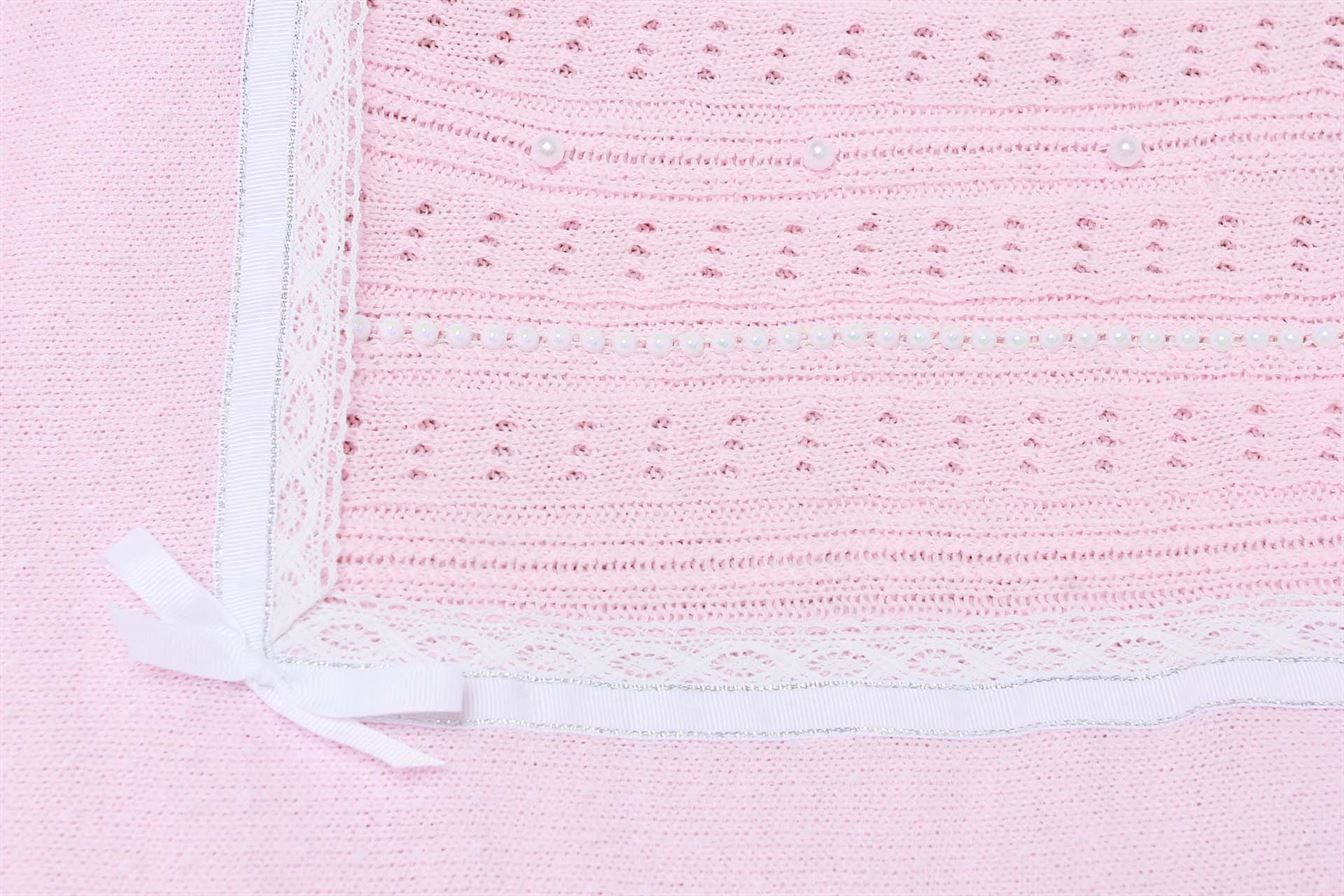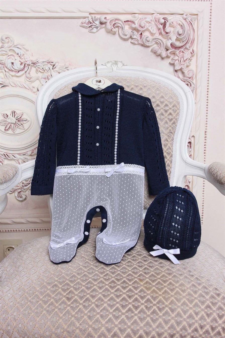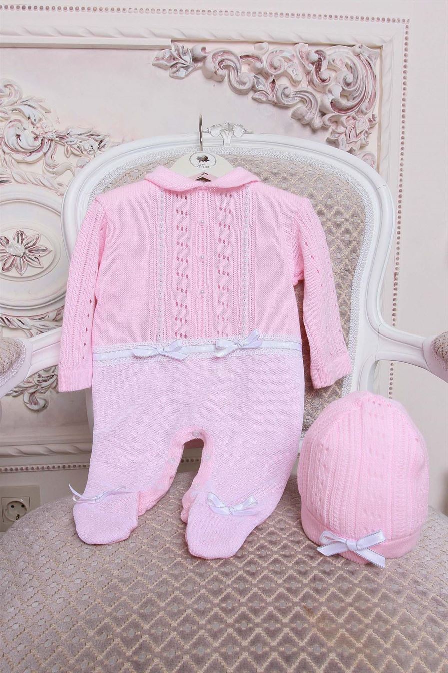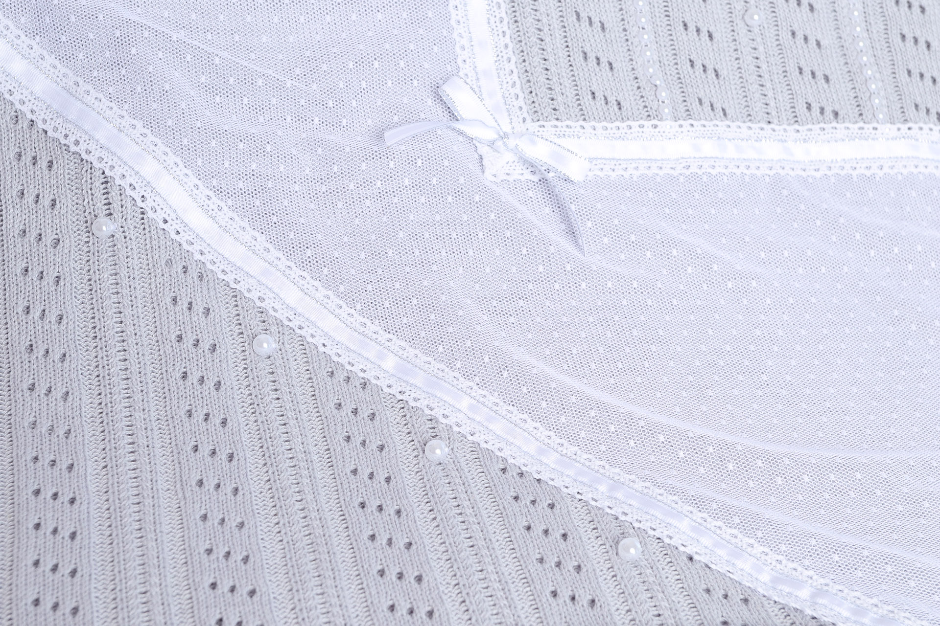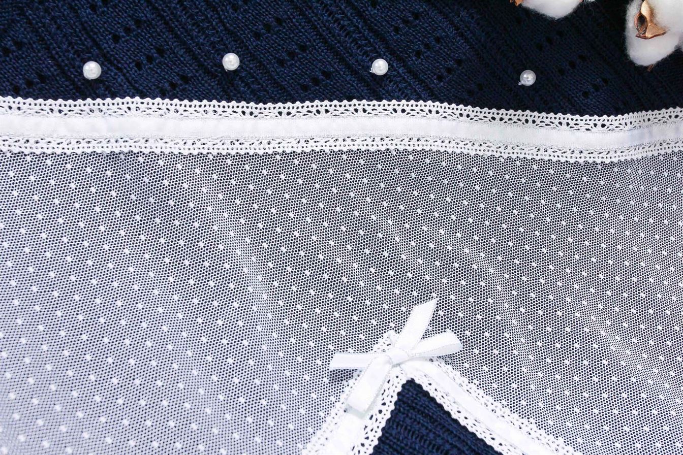 Нарядный комплект сочетающий в себе ажурную вязку, жемчужины, кружево и изящные бантики.