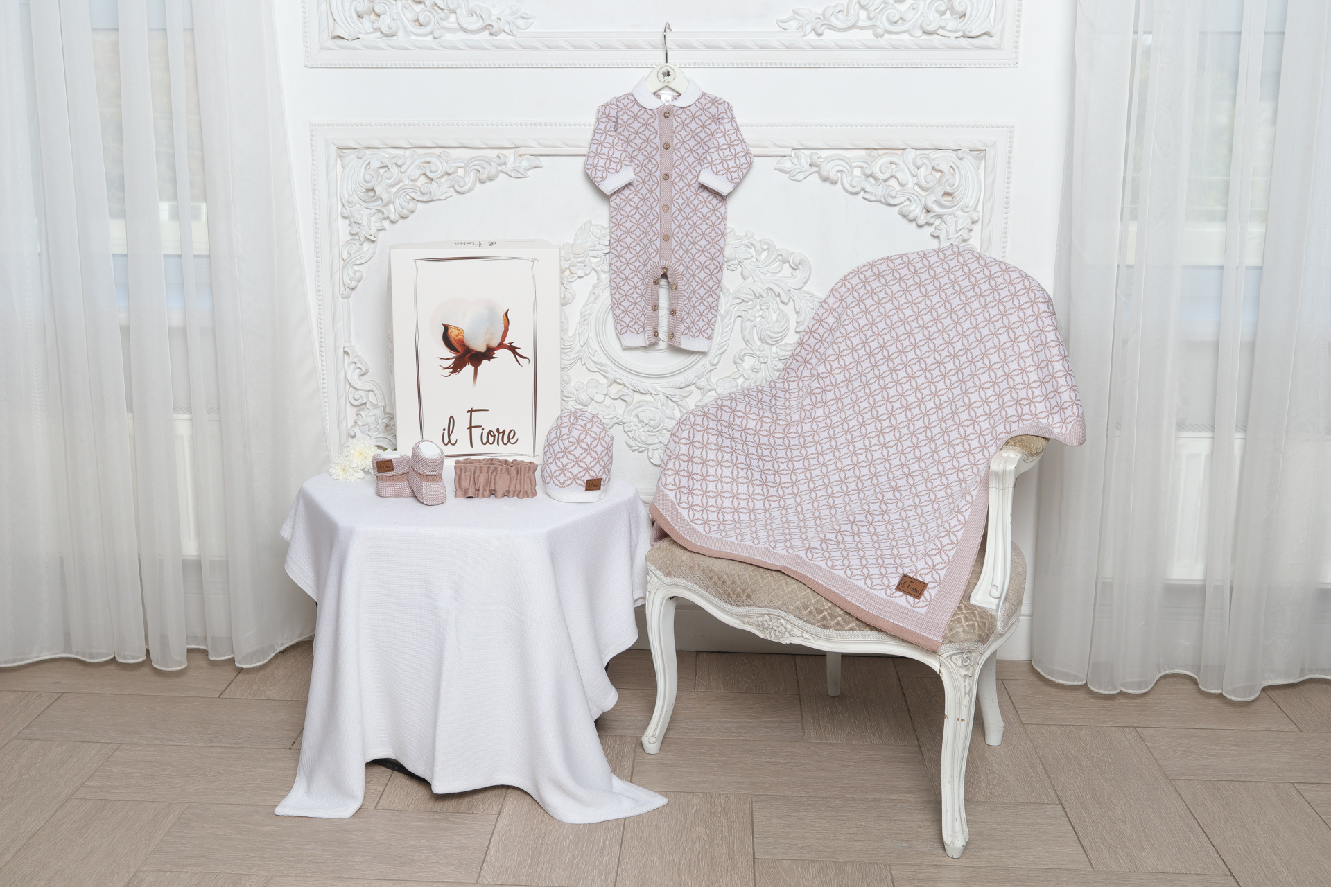 Утончённый узор придаёт каждому элементу неповторимую изысканность, делая образ малыша по-настоящему особенным. Благородные линии и изящные переплетения создают впечатление ручной работы, превращая обычный комплект в произведение искусства.