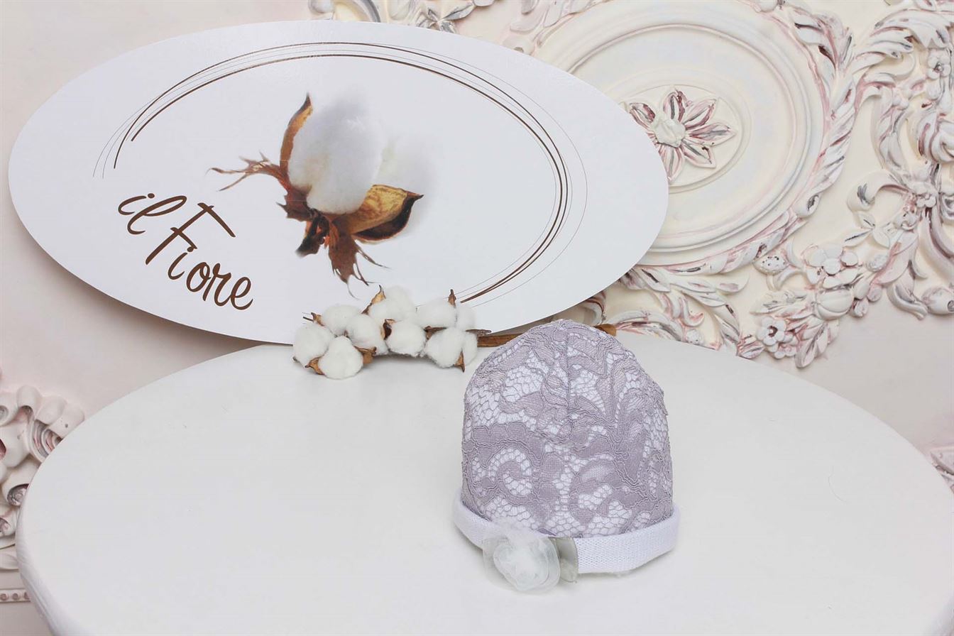 Нарядная шапочка, украшенная нежным кружевом и цветами ручной работы.