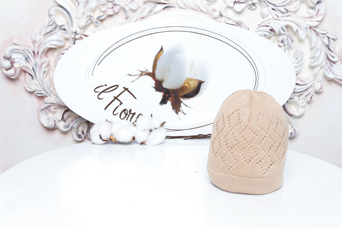 Легкая шапочка с ажурным плетением.